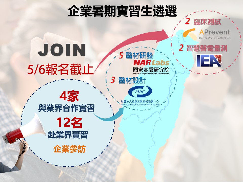 #產品研發設計 # 臨床測試 # 智慧聲電量測 #跨領域學習 #產業鏈結 #社會新鮮人