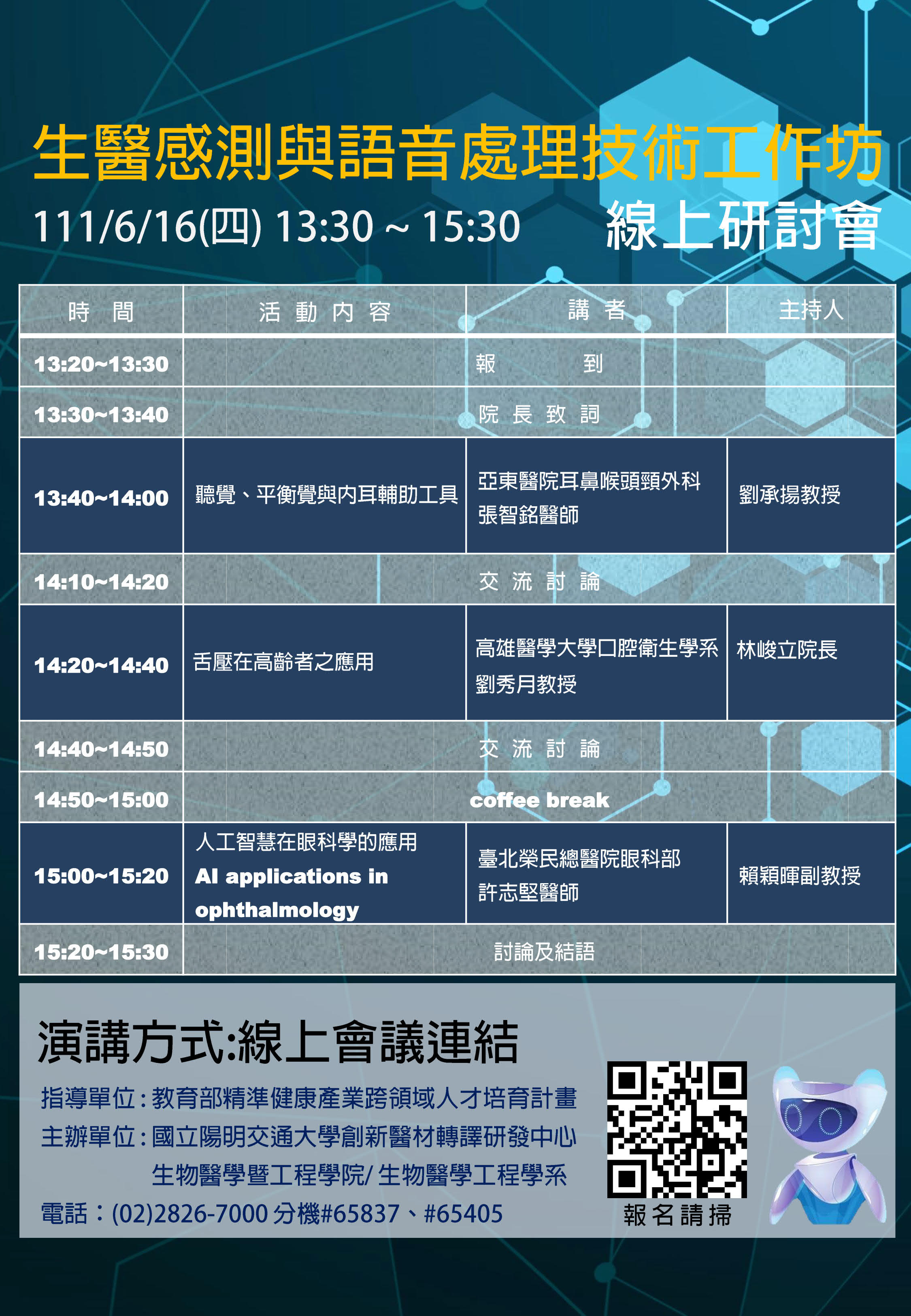線上【多感官智慧醫療系列】生醫感測與語音處理技術工作坊