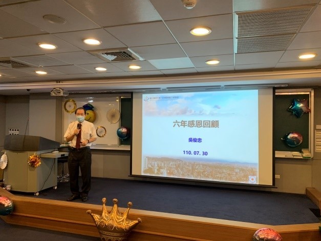 吳院長先回顧過去六年的工作內容,從內部員額、外部檢討、教學規劃、研究團隊、空間優化、經費爭取等,在吳院長任內下逐一落實,他更說明當初應聘時給自我期許的4E(EFFORT、EFFICIENCY、EFFECTIVENESS、EXCELLENCE),同樣將此工作信念傳遞給在座的每位嘉賓,演講最後,吳院長感性地說:「感謝當初遴選委員的厚愛、梁賡義校長的聘任,以及全院師生行政人員的幫忙,才能順利完成六年的任期」。