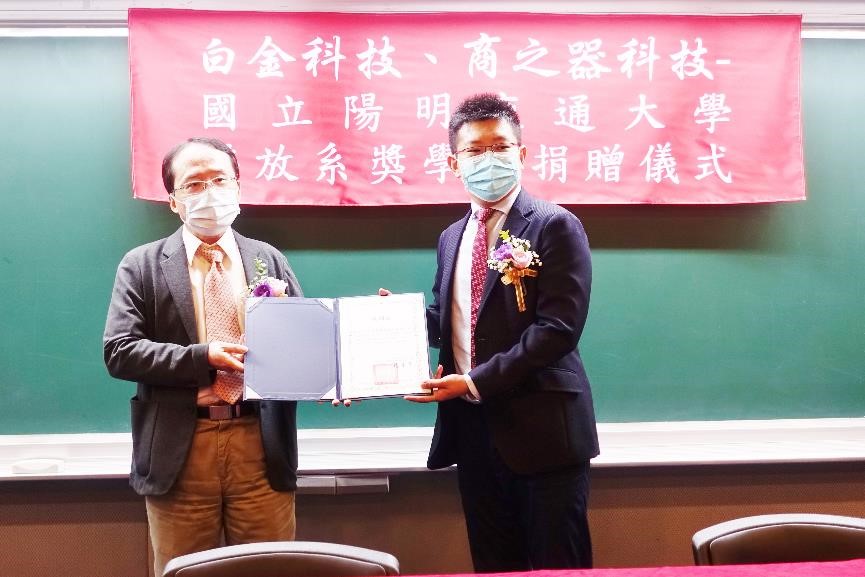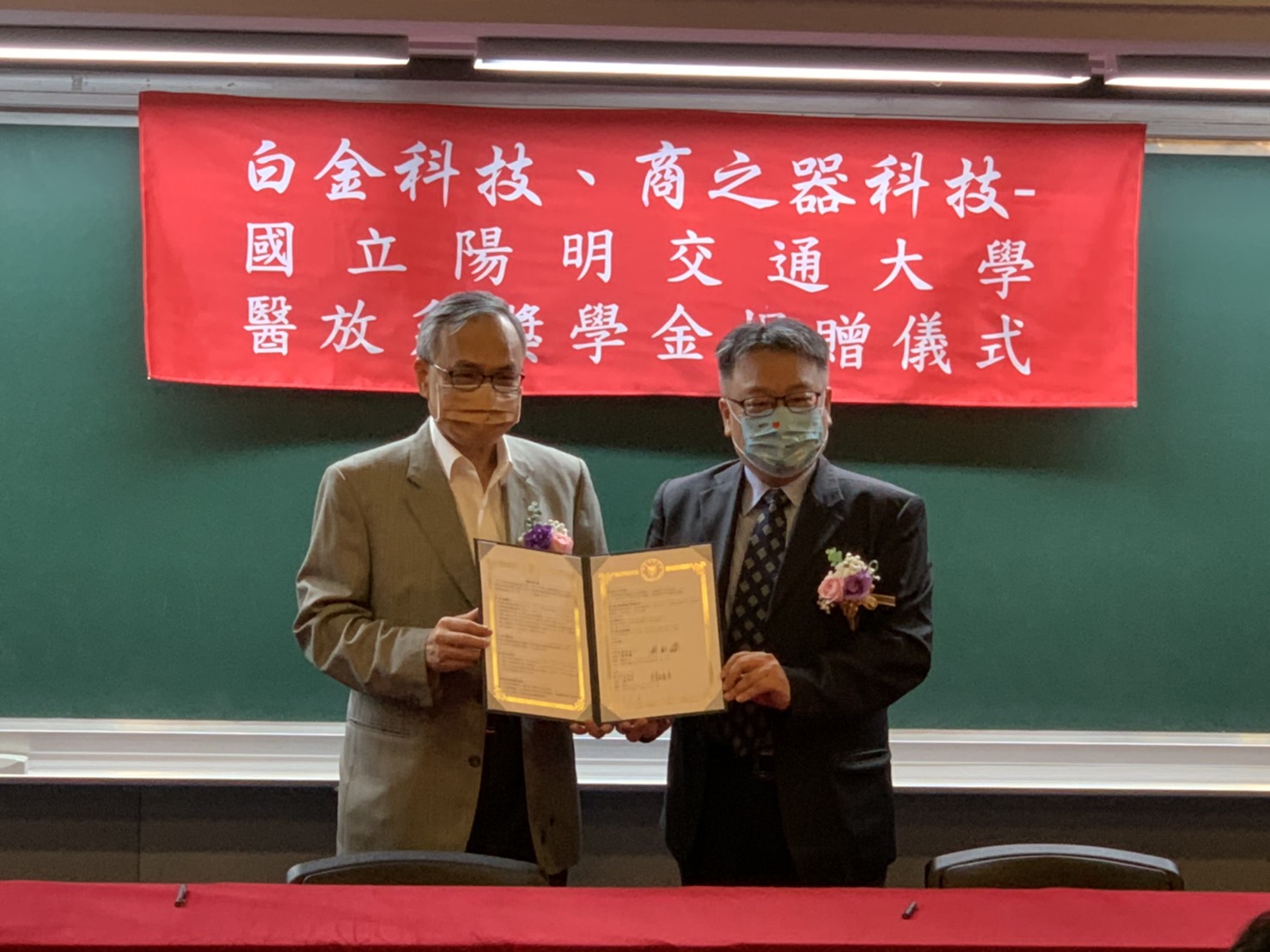 白金科技股份有限公司是以材料研發製造、光學薄膜設計製程為核心之科技公司,近幾年也積極投入核醫藥物之開發,擁有完整的材料研發及製程技術。過去白金科技與陽明交通核醫藥物團隊已有長年合作,如今更重視陽明交大醫放系於核醫藥物人才培育與專業研發,挹注十年一百二十萬獎助學金,鼓勵核醫藥物及分子影像學士與碩士人才培育。