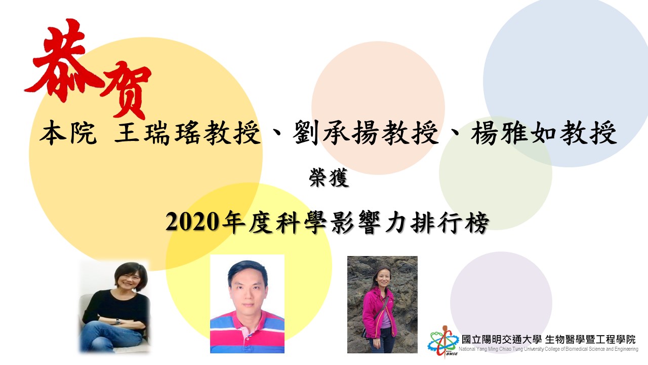 恭喜本院王瑞瑤教授、楊雅如教授、劉承揚教授榮獲2020年度科學影響力排行榜!