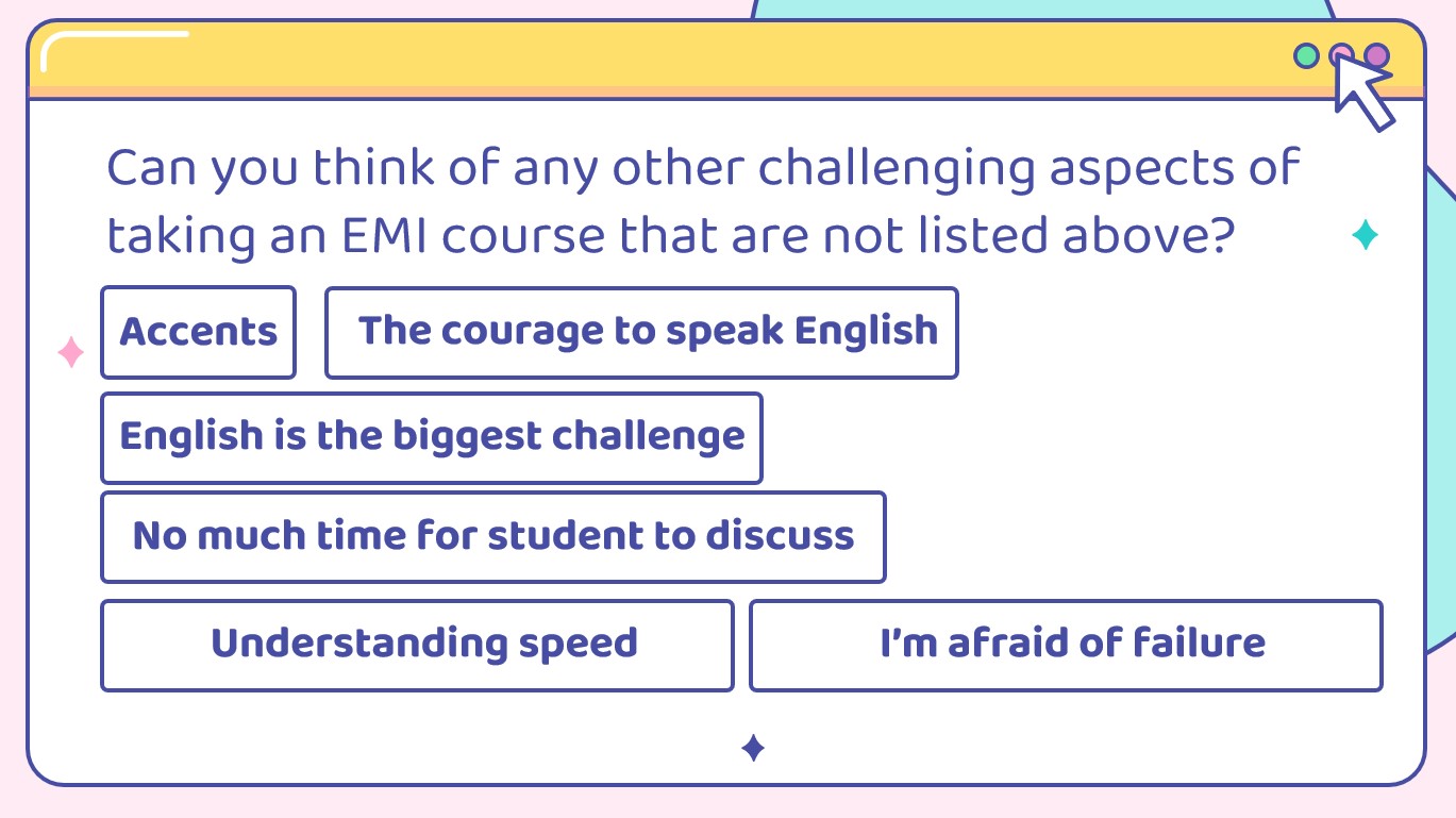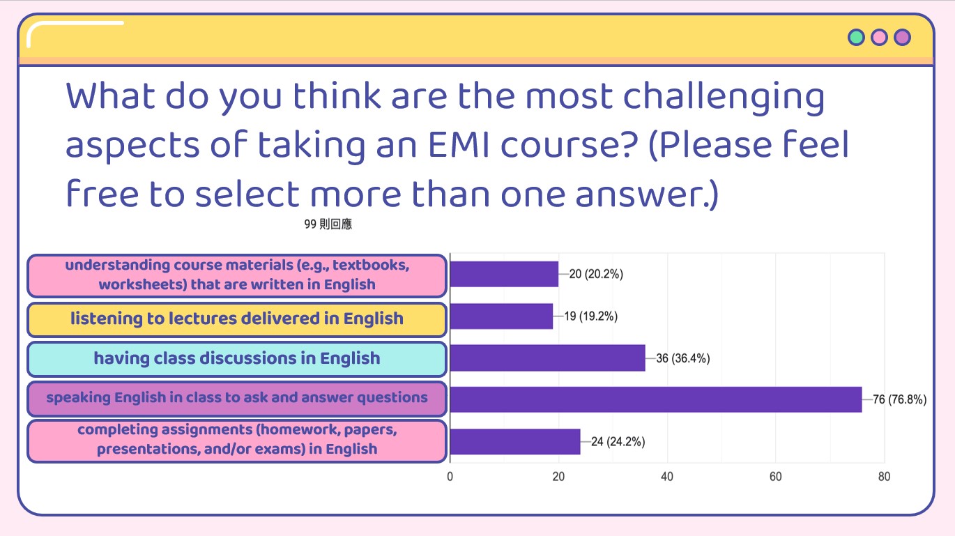 學生對於上EMI課程覺得最大的挑戰