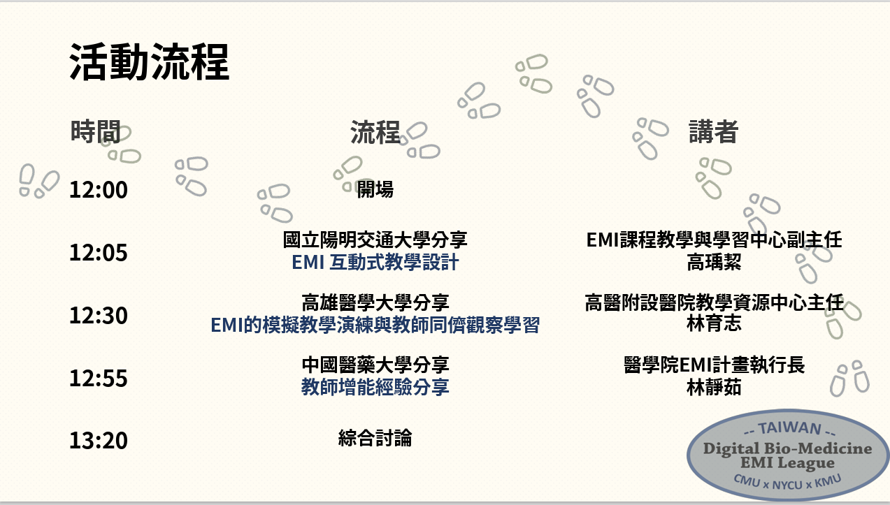 臺灣數位生醫EMI聯盟線上共同工作坊-教師增能工作坊